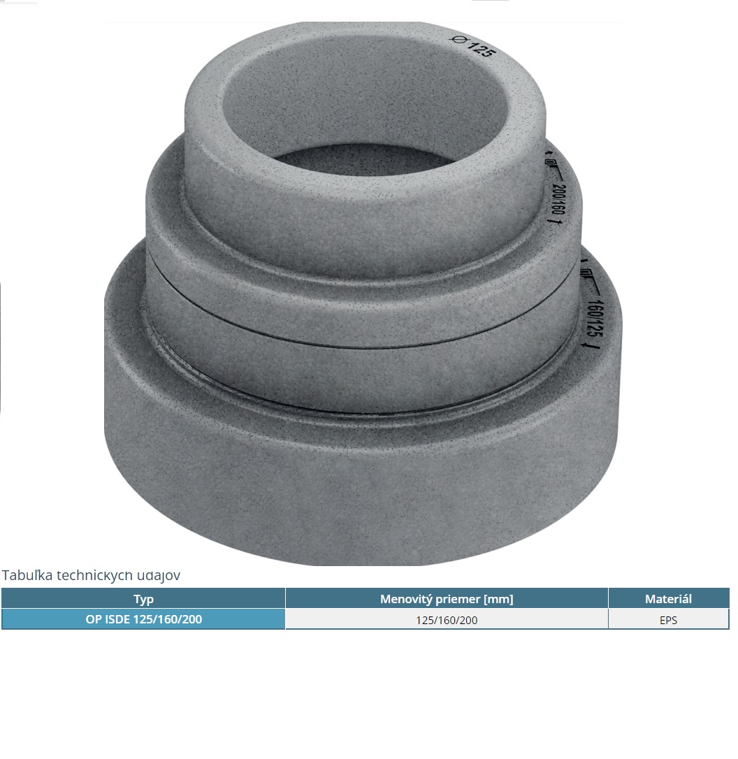 | Izolované potrubie z EPS polystyrénu ⌀ | ⌀125mm, ⌀160mm, ⌀200mm |