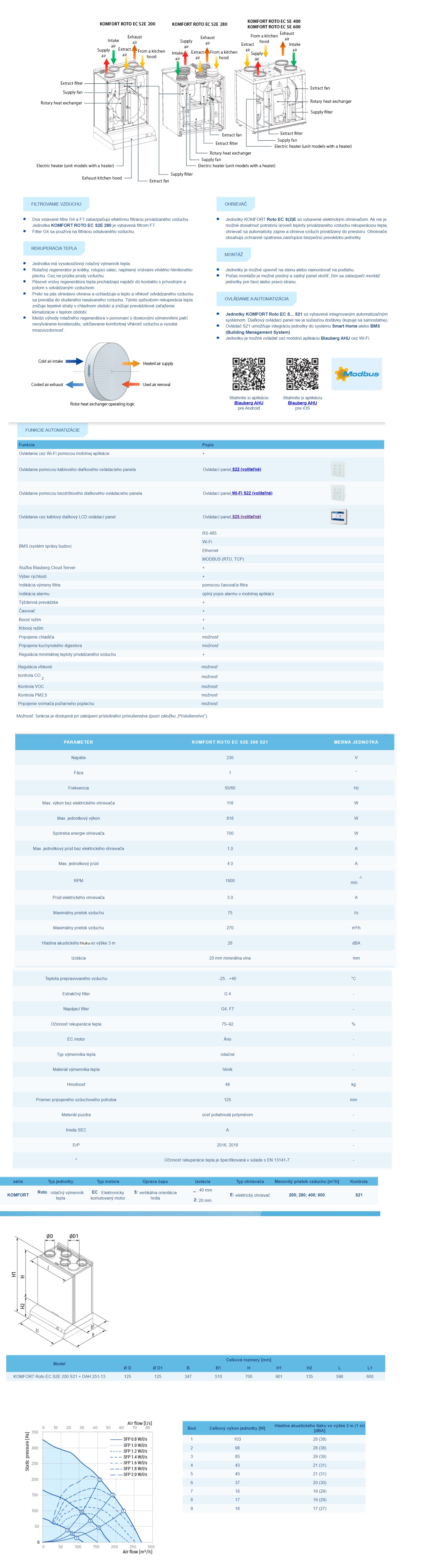 Rekuperačná jednotka Blauberg KOMFORT Roto EC S2E 200 S21 s predohrevom 270m3/h a riadením smartfónom je ideálna pre efektívne prívodné a odvodné vetranie v bytoch, domoch, chatách a iných objektoch.