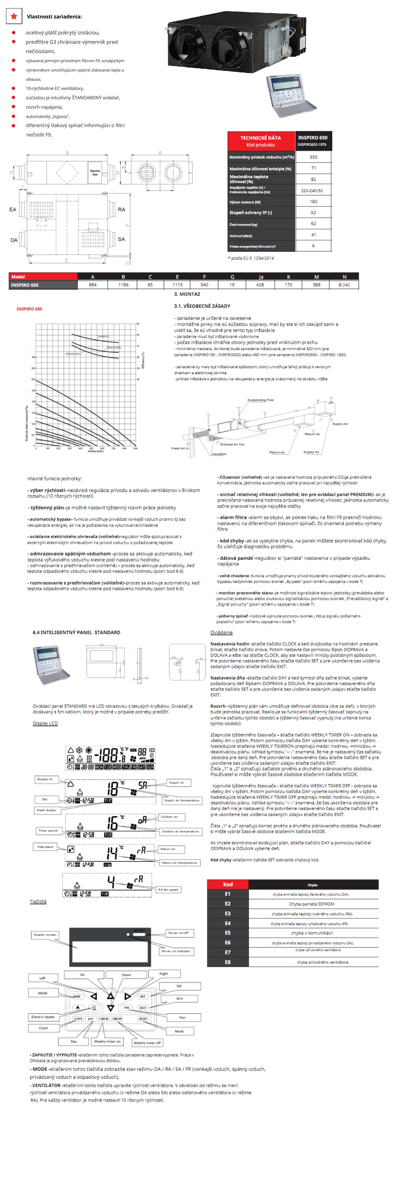 Rekuperačná jednotka INSPIRO 650 s výkonom 650m3/h je vybavená entalpickým výmenníkom, čo znamená, že nie je potrebné inštalovať systém odvodu kondenzátu. Tým sa minimalizuje riziko námrazy a zabezpečuje dodatočné zvlhčovanie a odvlhčovanie vzduchu privádzaného do miestnosti. Rekuperačné jednotky sú moderným prvkom, ktorý umožňuje rekuperáciu energie – tepla a vlhkosti.