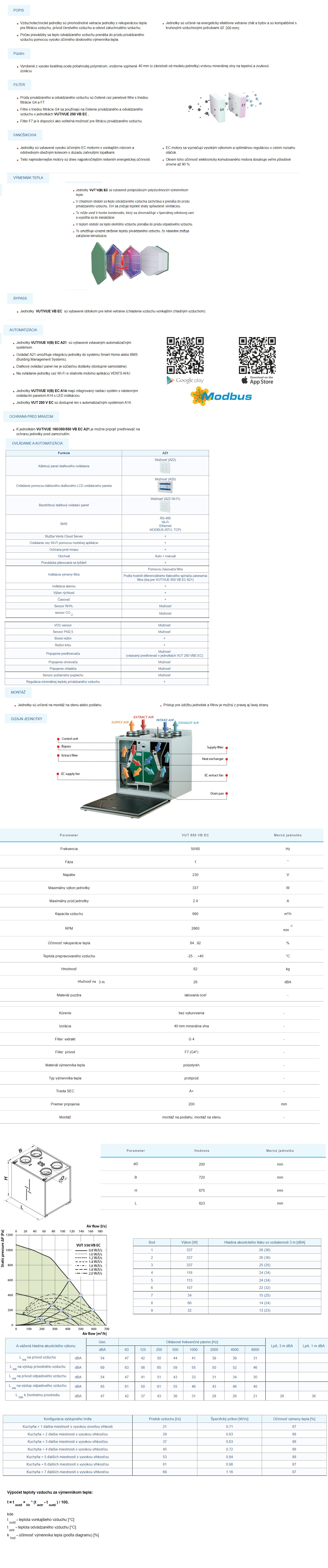 Rekuperačná jednotka VENTS VUT 550 VB EC s A21WIFI, 690 m³/h