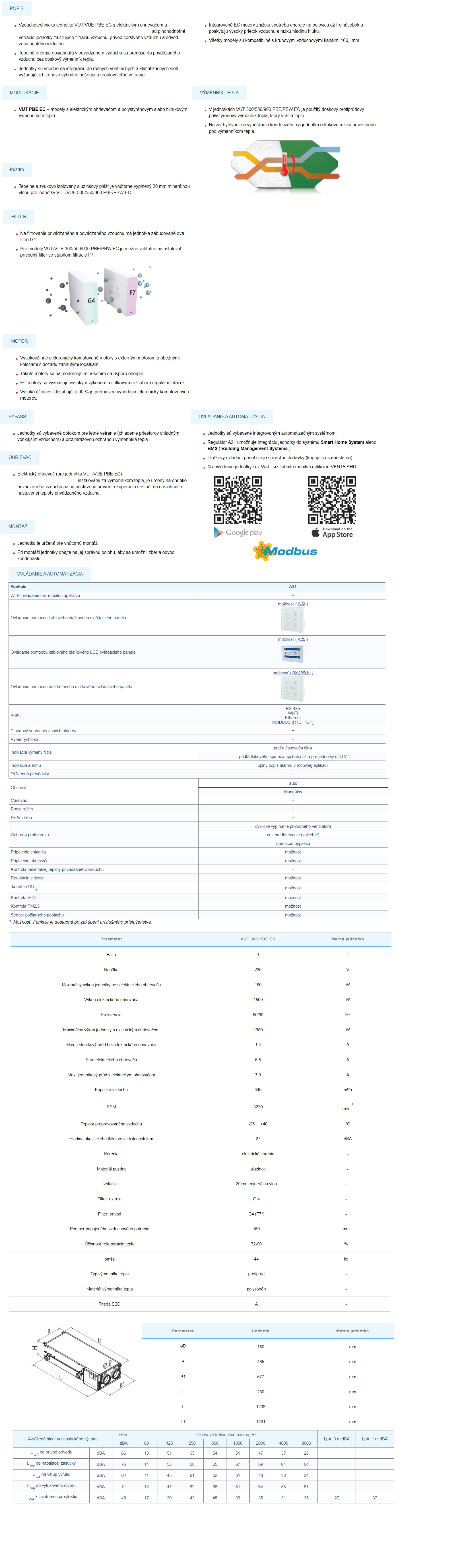 Rekuperačná jednotka VENTS VUT 300 PBE EC A 21 WIFI s elektrickým predohrevom. Ovládanie je možné cez smartfón alebo manuálne. Odporúčame dokúpiť riadiacu jednotku A22, A25, A22 WIFI pre lepšie ovládanie.