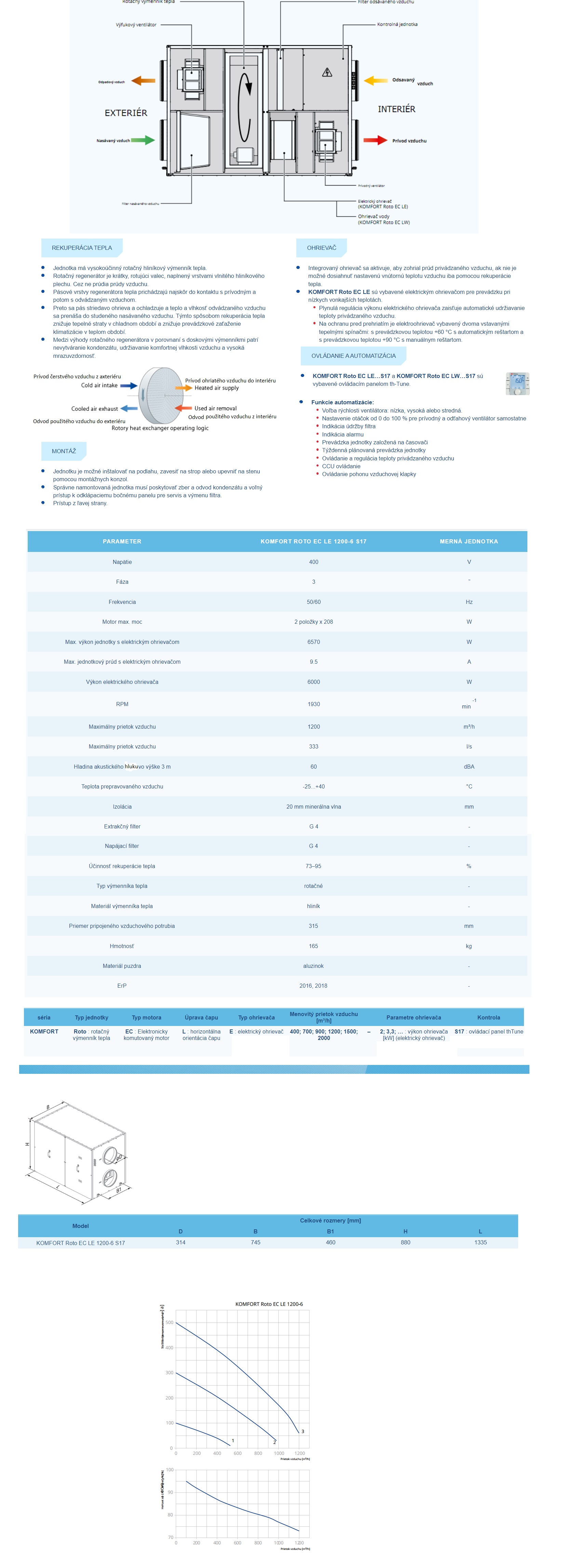 Rekuperátor Blauberg KOMFORT Roto EC LE 1200-6 S17 – 1200m³/h s predohrevom je určený pre efektívne prívodné a odvodné vetranie v bytoch, domoch, chatách a iných objektoch.