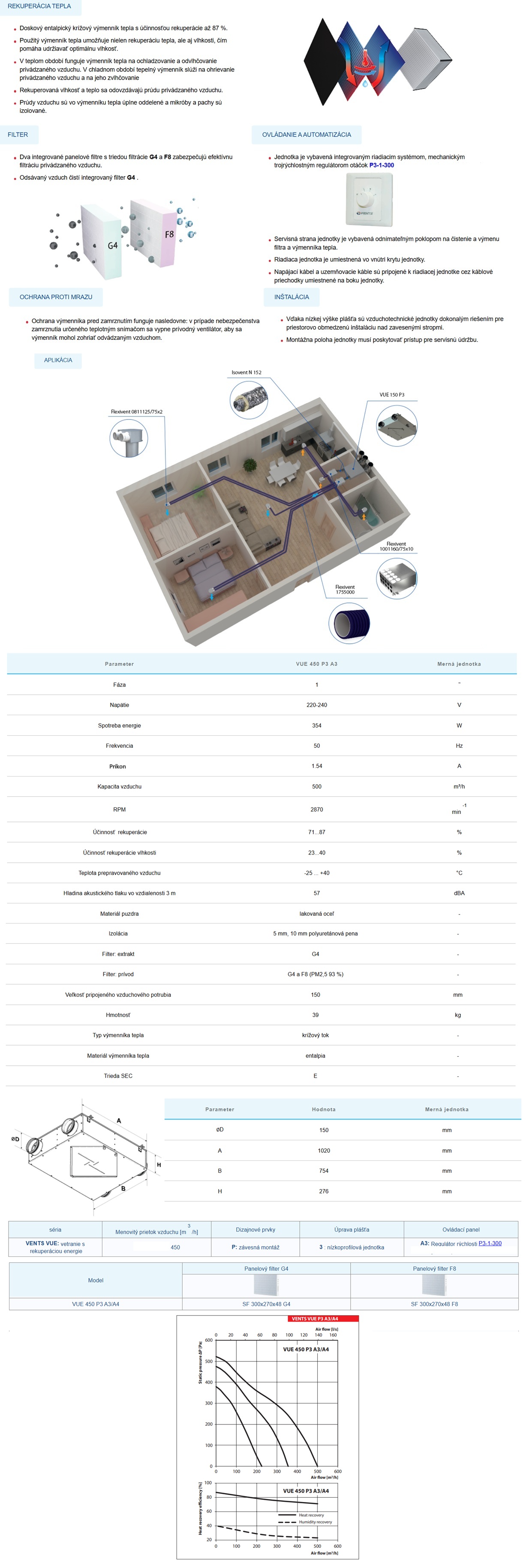 Rekuperátor VENTS VUE 450 P3 A3, 500 m³/h, trojrýchlostný