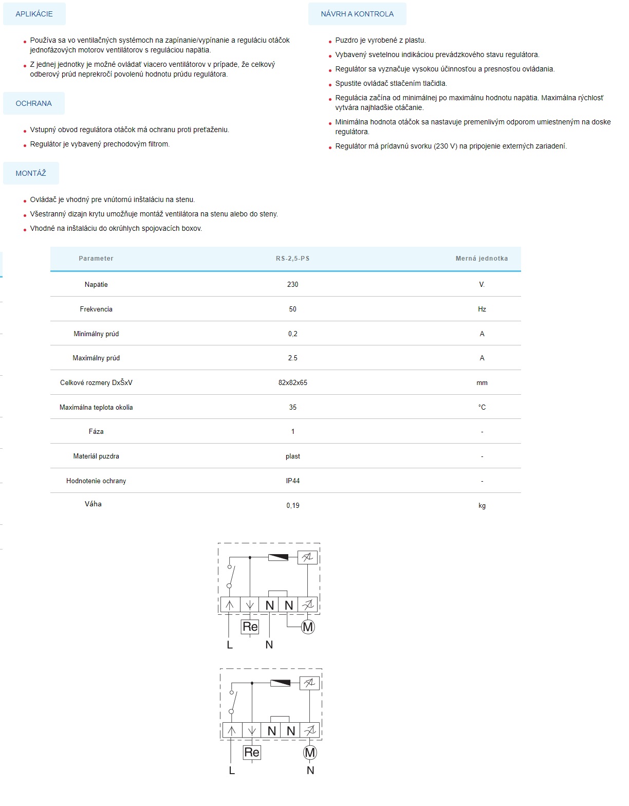 Tyristorový regulátor otáčok 230V do 2,5A vo ventilačných systémoch na zapínanie / vypínanie otáčok a reguláciu otáčok jednofázových motorov s riadeným výkonom.