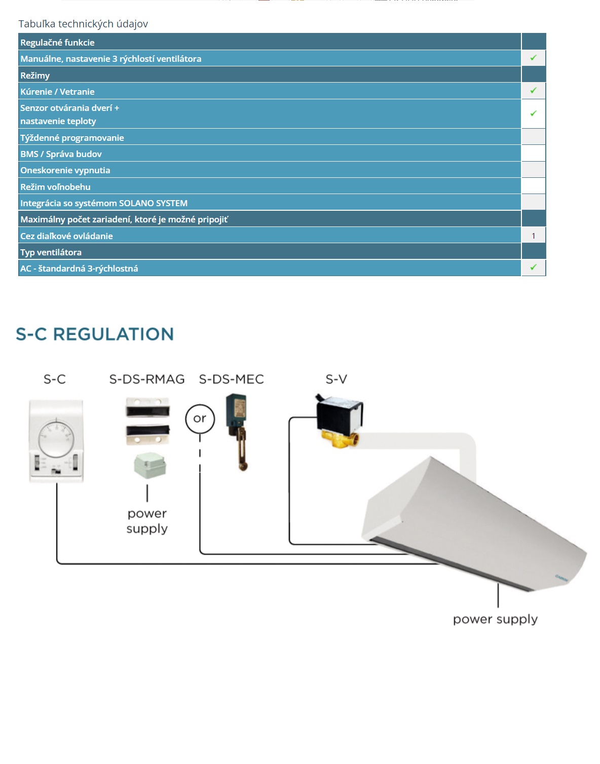 Trojstupňový prepínač SC SOLANO s reguláciou otáčok ventilátora a termostatom pre vzduchové clony.