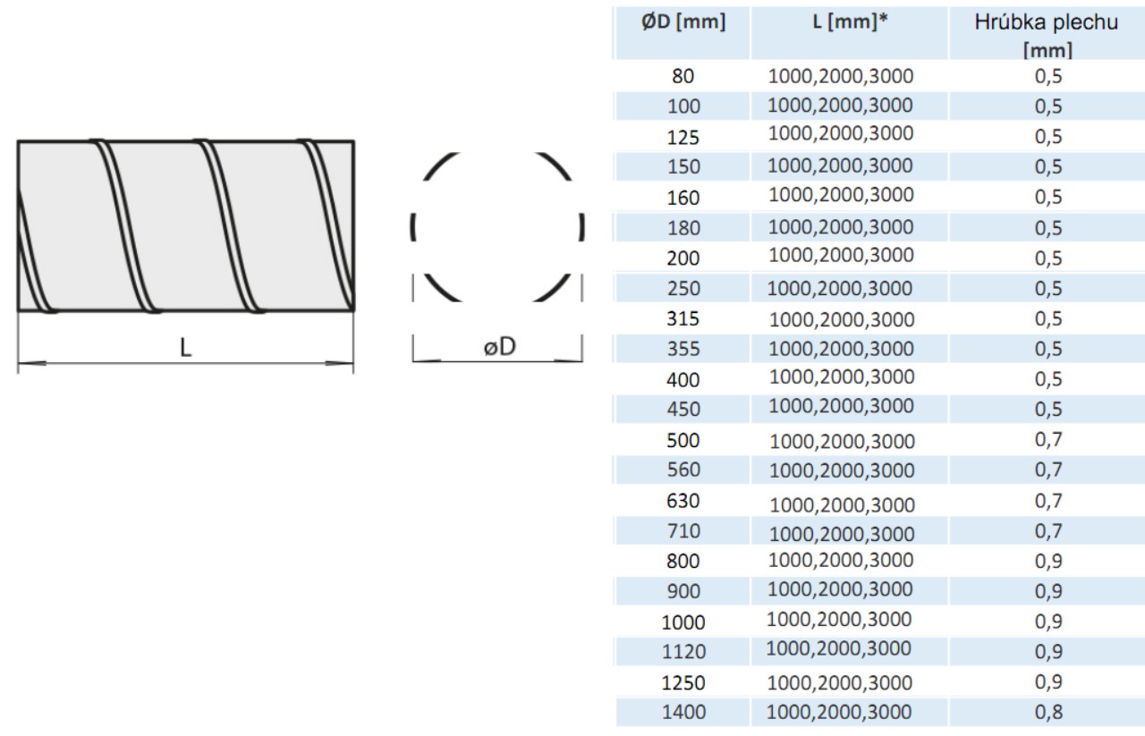 Spiro potrubie Ø 315mm, 1m – kruhové vzduchové potrubie