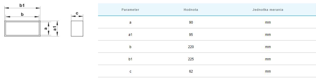 | Hranaté potrubia PLASTOVÉ- □ Výška × Šírka | □ V × Š-90x220mm |