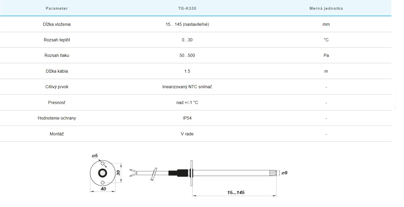 TG-K 330 Kanálový snímač teploty 230V s pripojovacím káblom