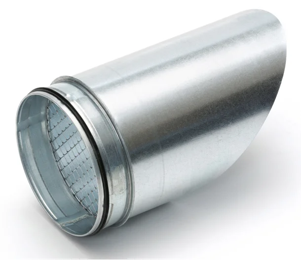 Pozinkovaná 45° ukončovacia mriežka do potrubia s priemerom 160 mm je navrhnutá ako výstupný prvok so sieťkou na ochranu proti vtákom. Tento ukončovací diel zabezpečuje, že pri inštalácii na vonkajšiu stenu nebude do potrubného systému padať dážď.