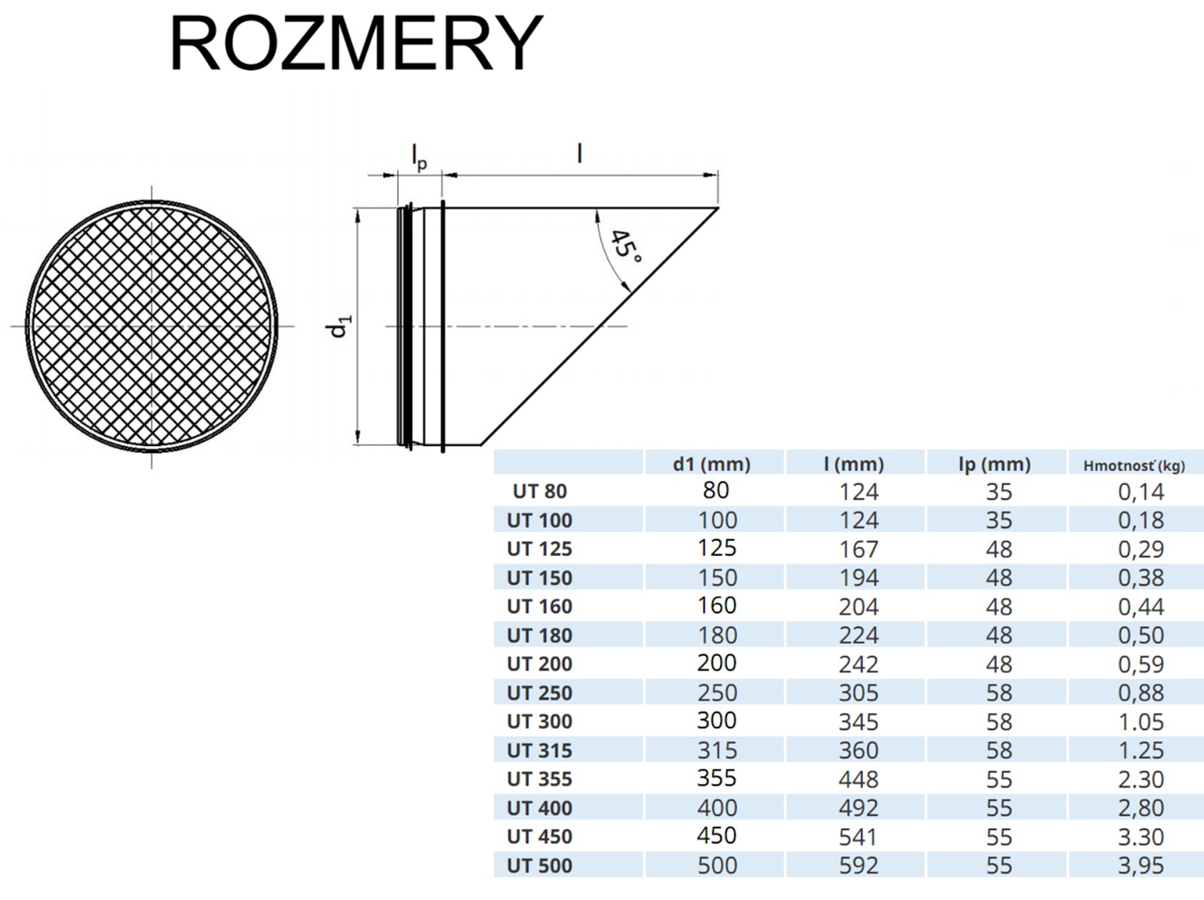UT 45° ukončovacia mriežka 315mm so sieťkou proti vtákom