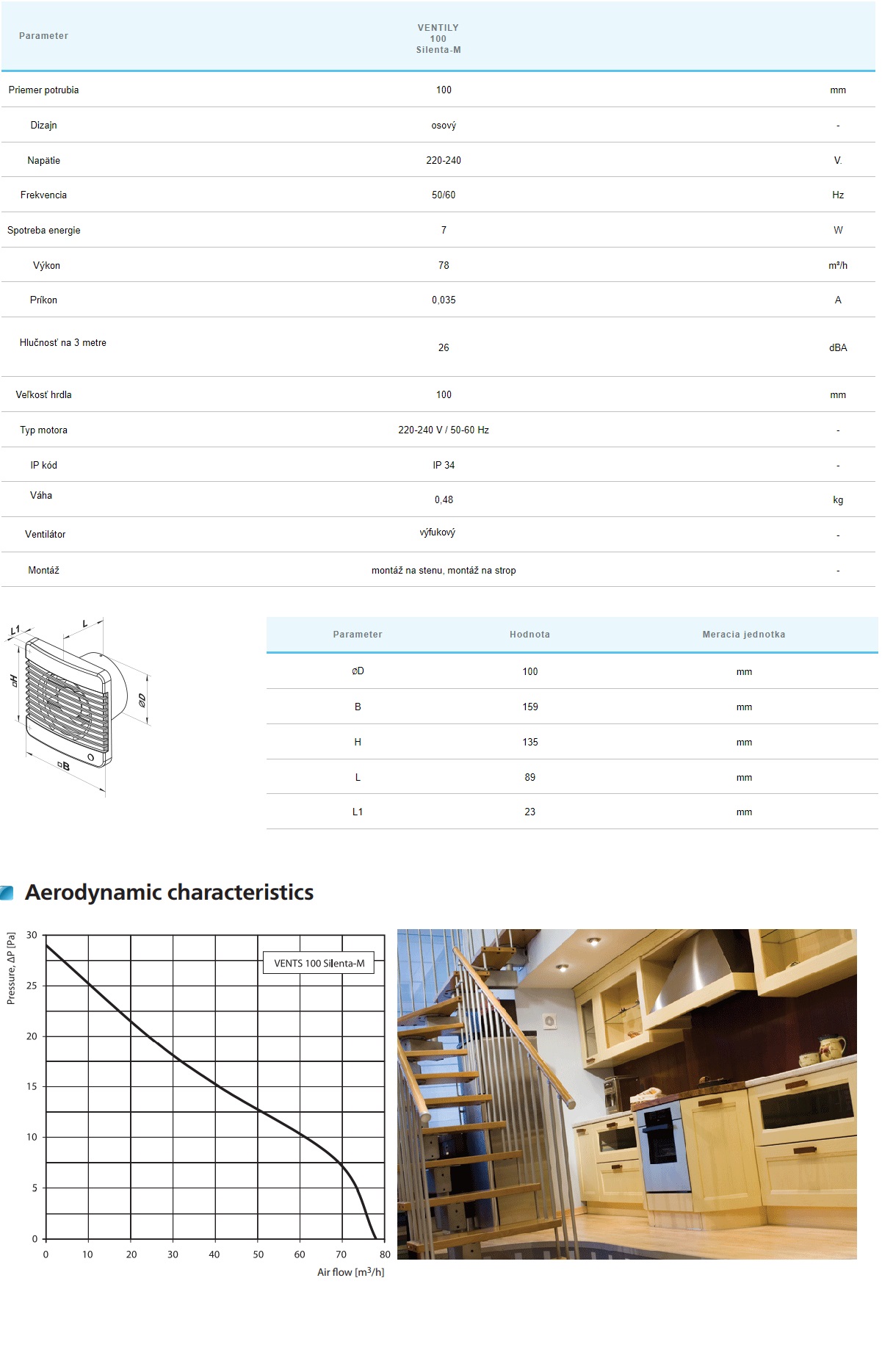 VENTS Silenta 100MTH ventilátor do kúpeľne a WC s výkonom 78m/h Ø 100mm je ideálny pre kontinuálne alebo periodické odsávacie vetranie kúpeľní, spŕch, kuchýň a ďalších úžitkových priestorov. Tento ventilátor je navrhnutý pre vetranie priestorov s vysokými obmedzeniami hladiny hluku. Upevnenie ventilačného hriadeľa alebo pripojenie potrubia je jednoduché a efektívne. Kompatibilný so vzduchovými kanálmi Ø 100.