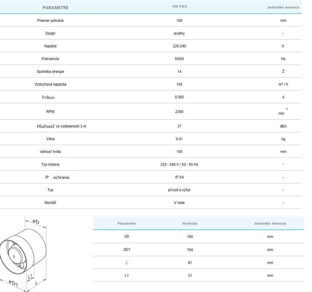 | Vlastnosti-výbava ventilátora | Bez prídavnej funkcie-základné, Gulôčkové ložisko-vhodná do stropu aj na stenu |
