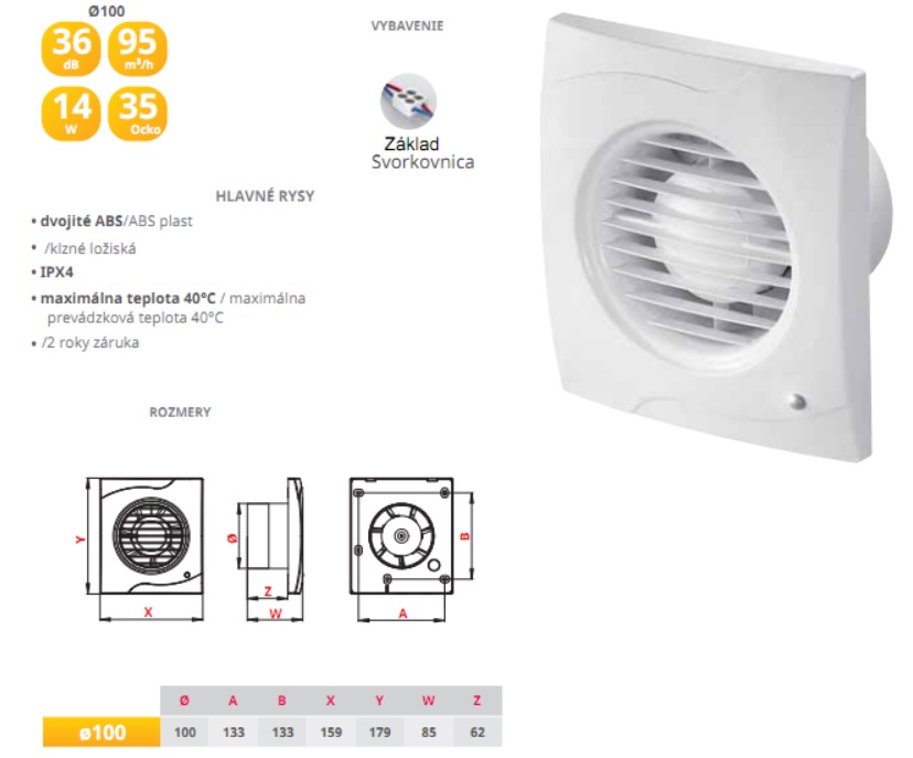 - Vlastnosti-výbava ventilátora : Bez prídavnej funkcie-základné, Gulôčkové ložisko-vhodná do stropu aj na stenu