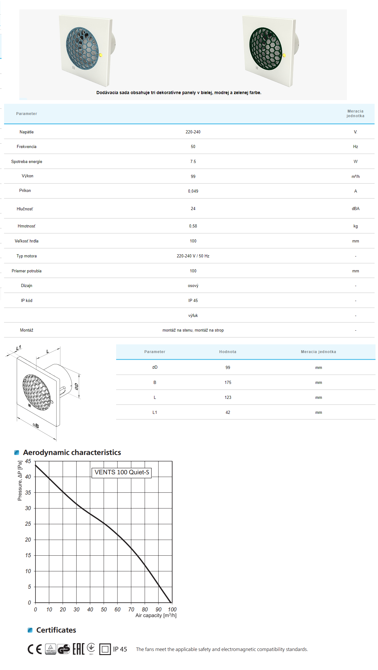 | Vlastnosti-výbava ventilátora | Bez prídavnej funkcie-základné, Gulôčkové ložisko-vhodná do stropu aj na stenu, Spätná klapka |