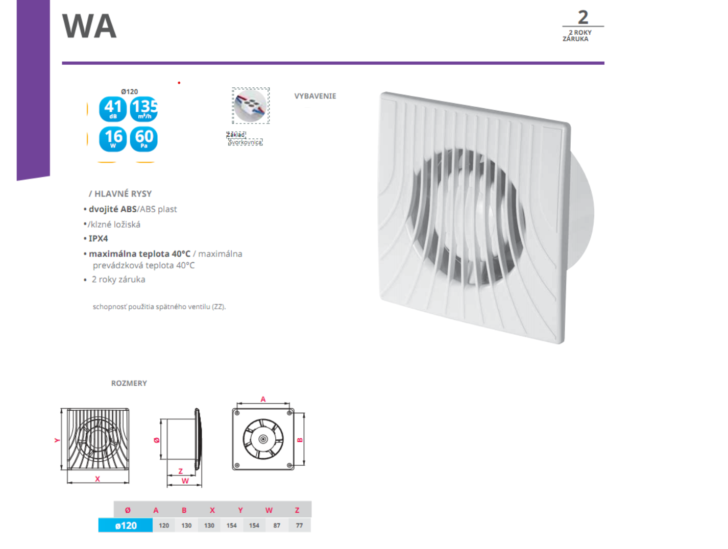 Ventilátor do kúpeľne AWENTA WA120 ponúka jednoduché a spoľahlivé riešenie pre ventiláciu. Vysoká spoľahlivosť a dobré prevádzkové parametre.