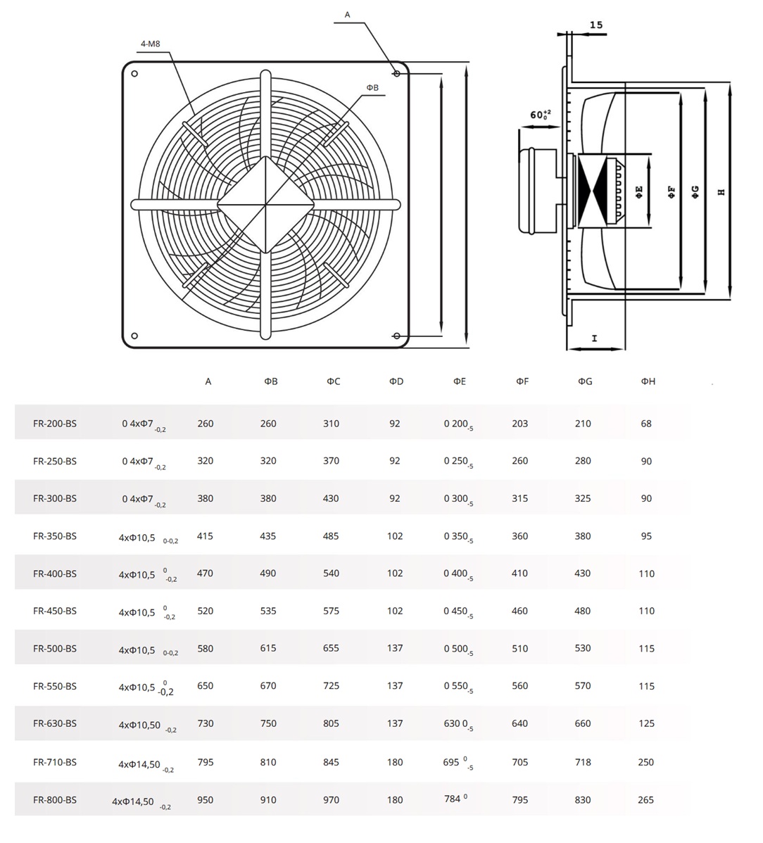 | Nástenné priemyselné ventilátory-⌀D-lopatky | ⌀200mm-Filter zaradenia medzi výkon od 300-do 1060m3/h |