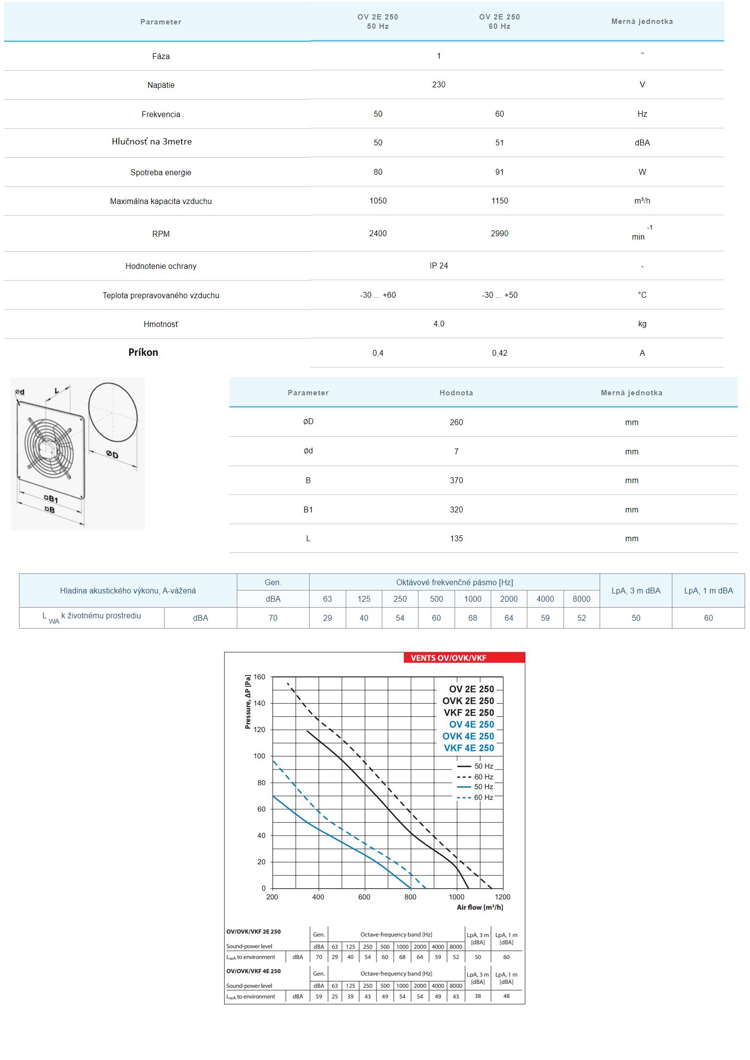 Axiálny priemyselný ventilátor VENTS OV2 E 250 je určený pre vysokú kapacitu výmeny vzduchu v rôznych priestoroch s nízkou systémovou rezistenciou.