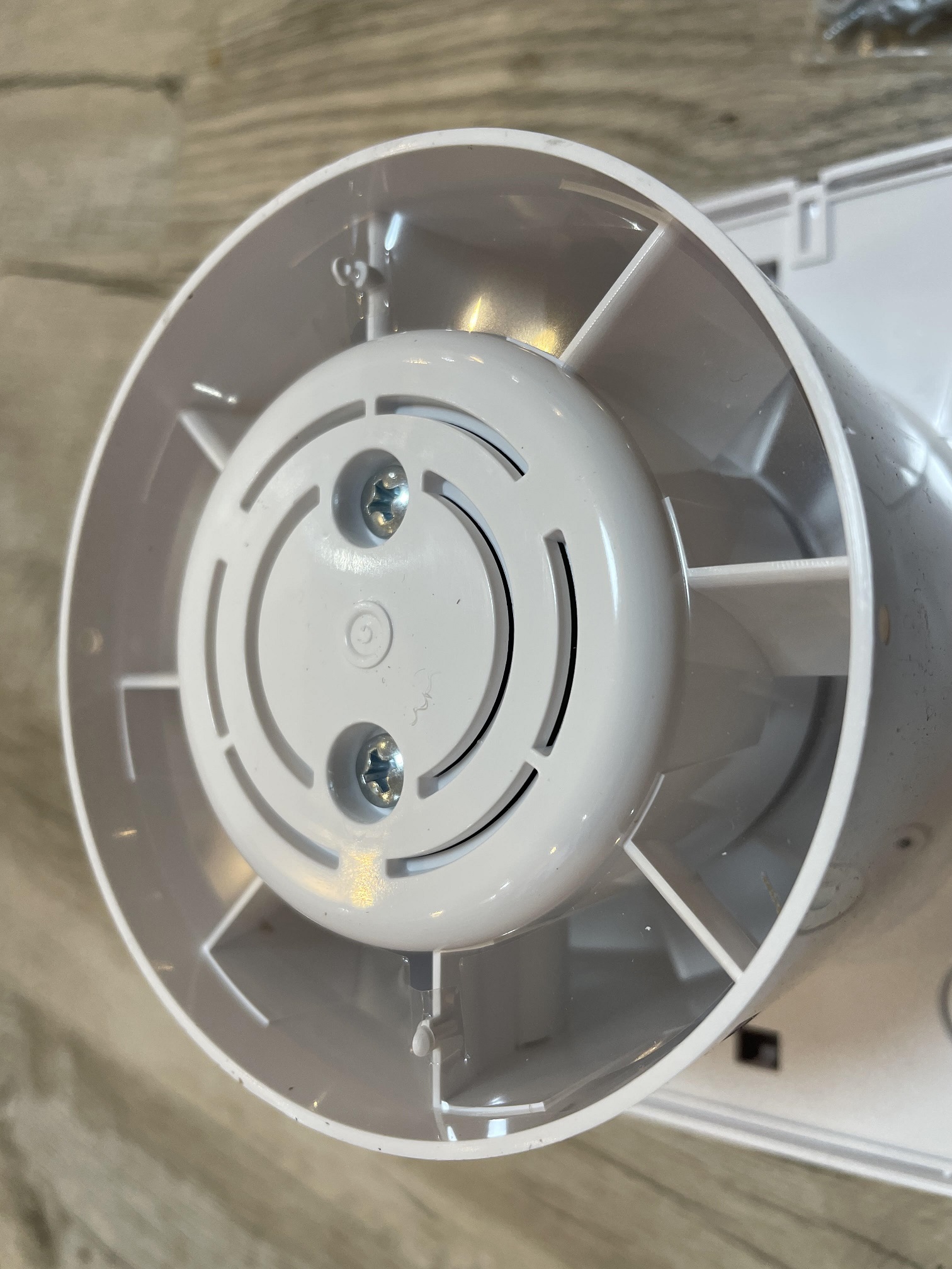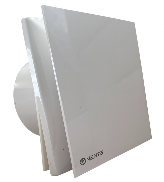 Kúpeľňový ventilátor VENTS 100 Solid s nízkou hlučnosťou, určený na trvalé vetranie v sprchách a kúpeľniach.