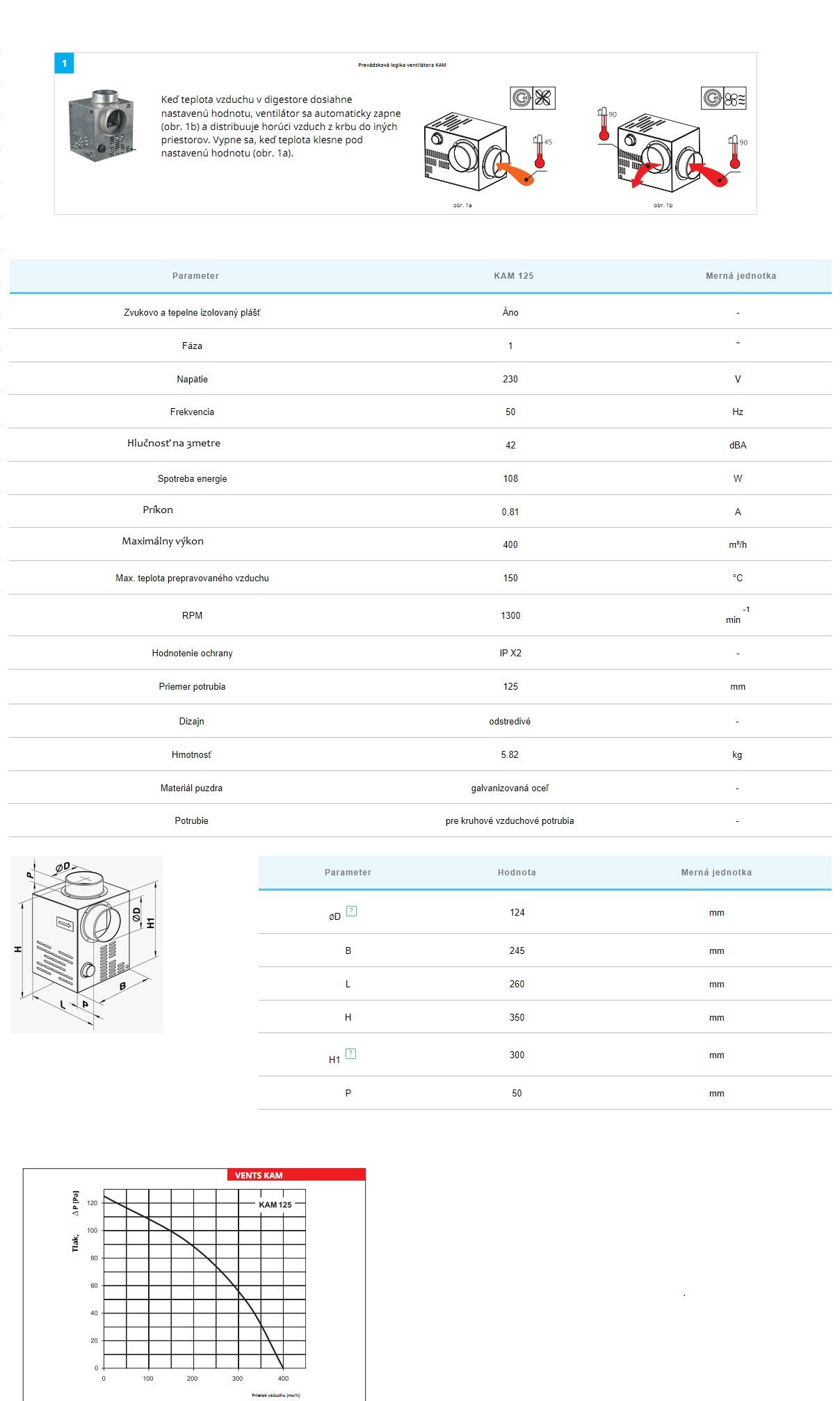 Kód: 8370 VENTS- Krbové ventilátory : ⌀napojenia 125mm