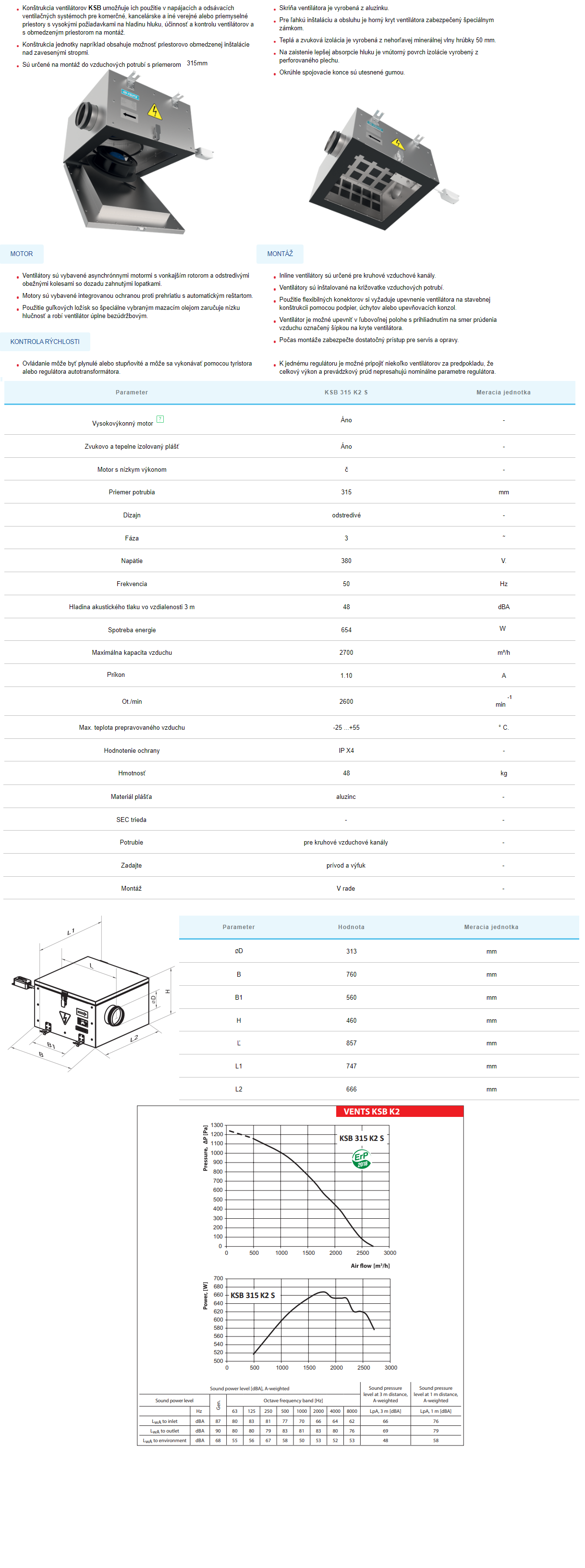 VENTS KSB Ø315mm Tichý radiálny ventilátor 2150 m³/h