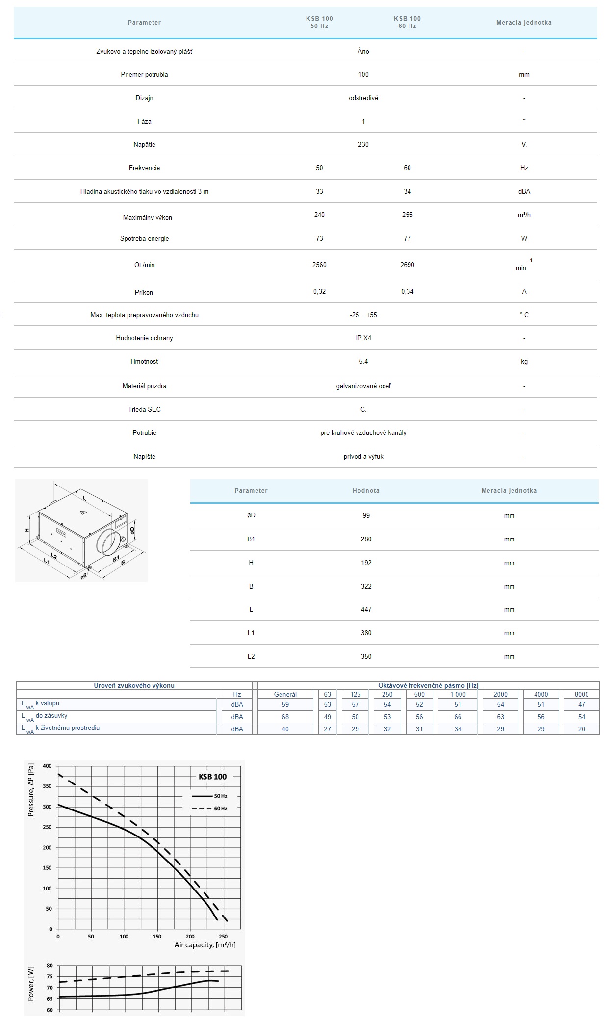 VENTS KSA 150-2E Radiálny ventilátor s výkonom 750 m³/h