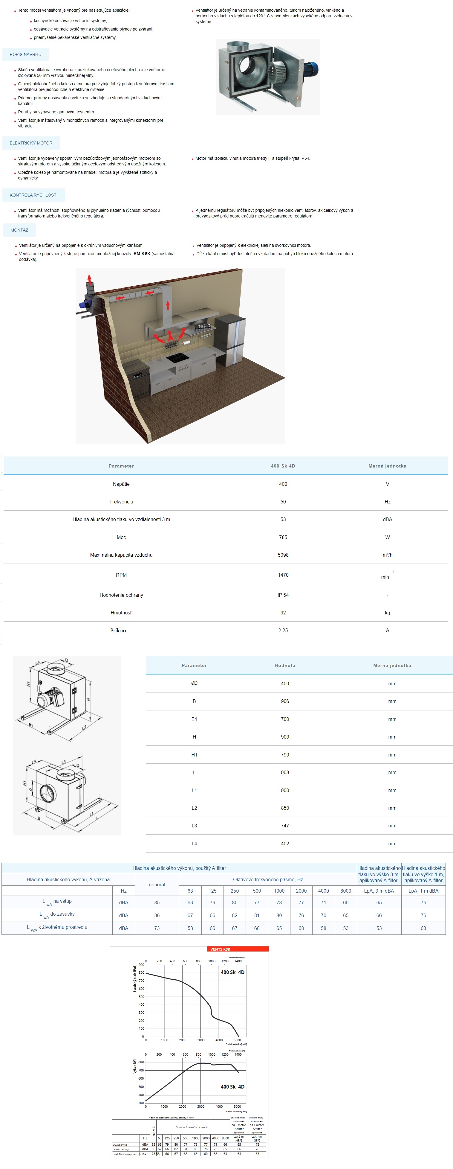 Vents KSK 400 4D – priemer 400mm, výkon 5098 m3/h, prevádzková teplota do 120 °C, 400V.