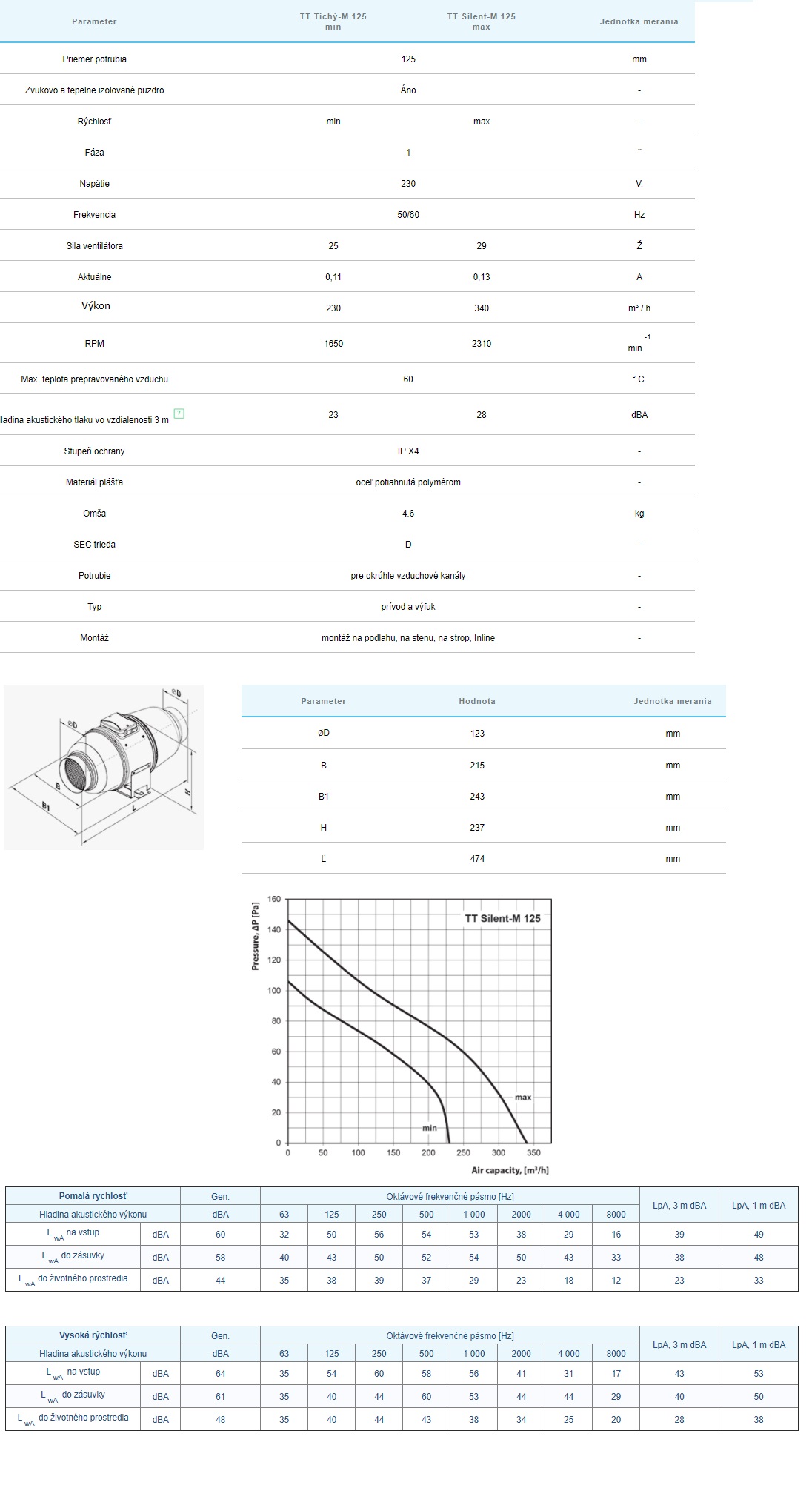 Kód: 8763 Blauberg- Priemyselné ventilátory pre potrubie ⌀ : ⌀125mm-Filter zaradenia medzi výkon od 114-do 505m3/h