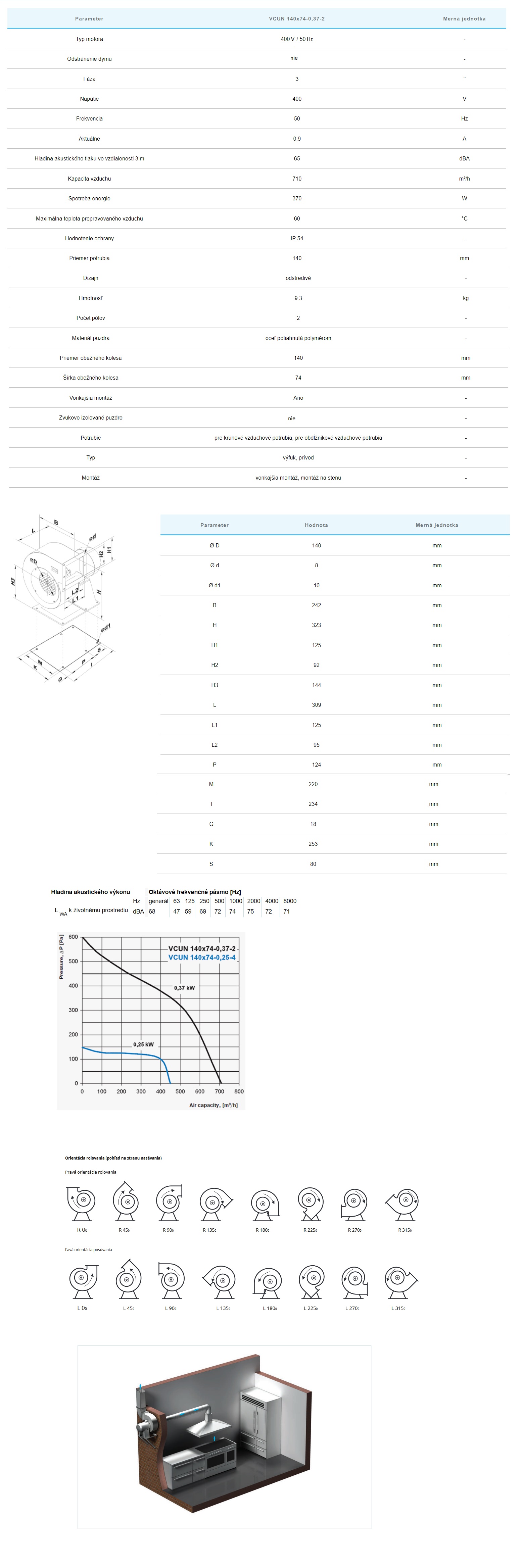 VENTS VCUN 140×74-0,37-2 priemyselný radiálny ventilátor