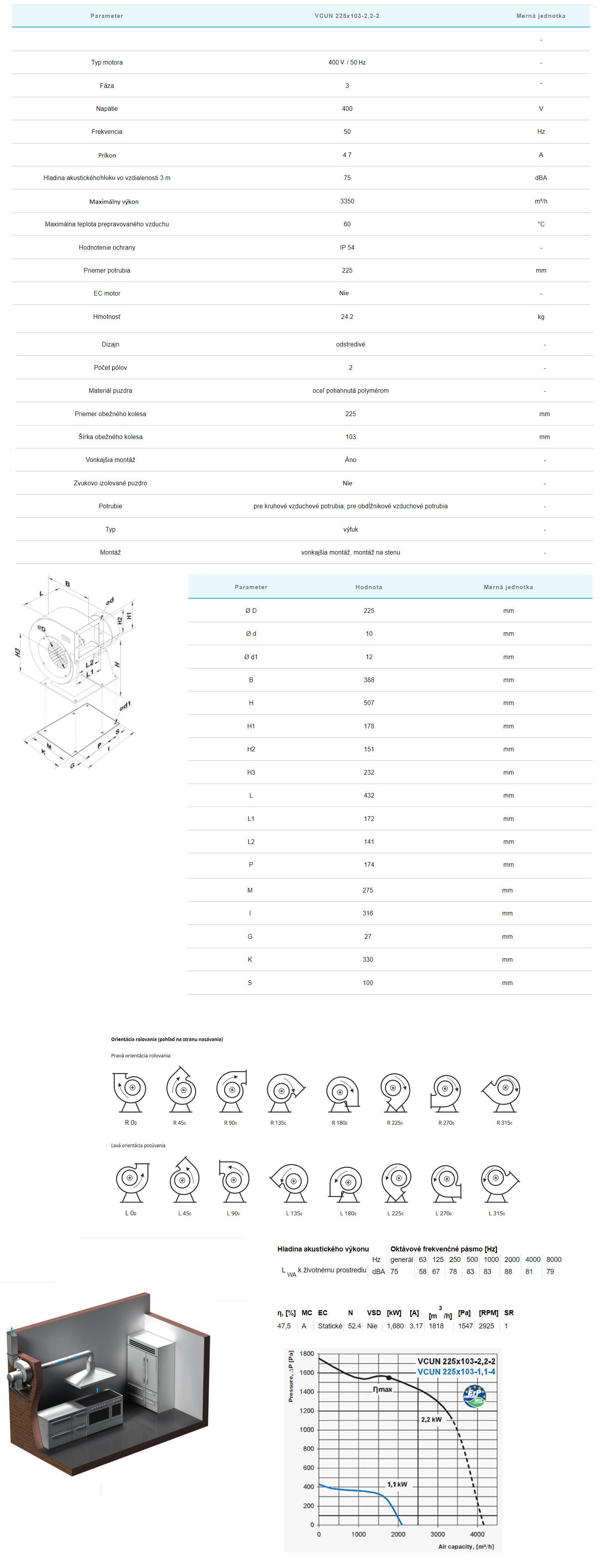 | Priemyselné ventilátory pre potrubie ⌀ | ⌀225mm-Filter zaradenia medzi výkon od2125-do3350m3/h |