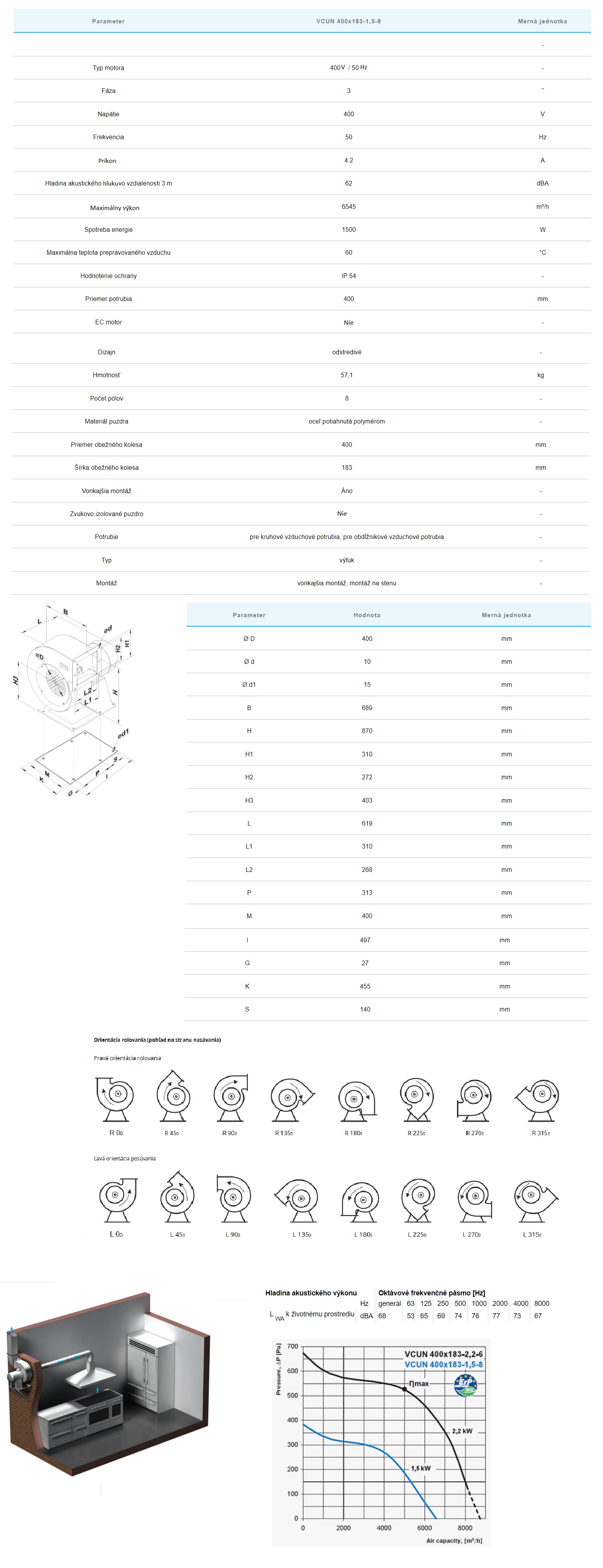 | Priemyselné ventilátory pre potrubie ⌀ | ⌀400mm -Filter zaradenia medzi výkon od 2677-do10175m3/h |