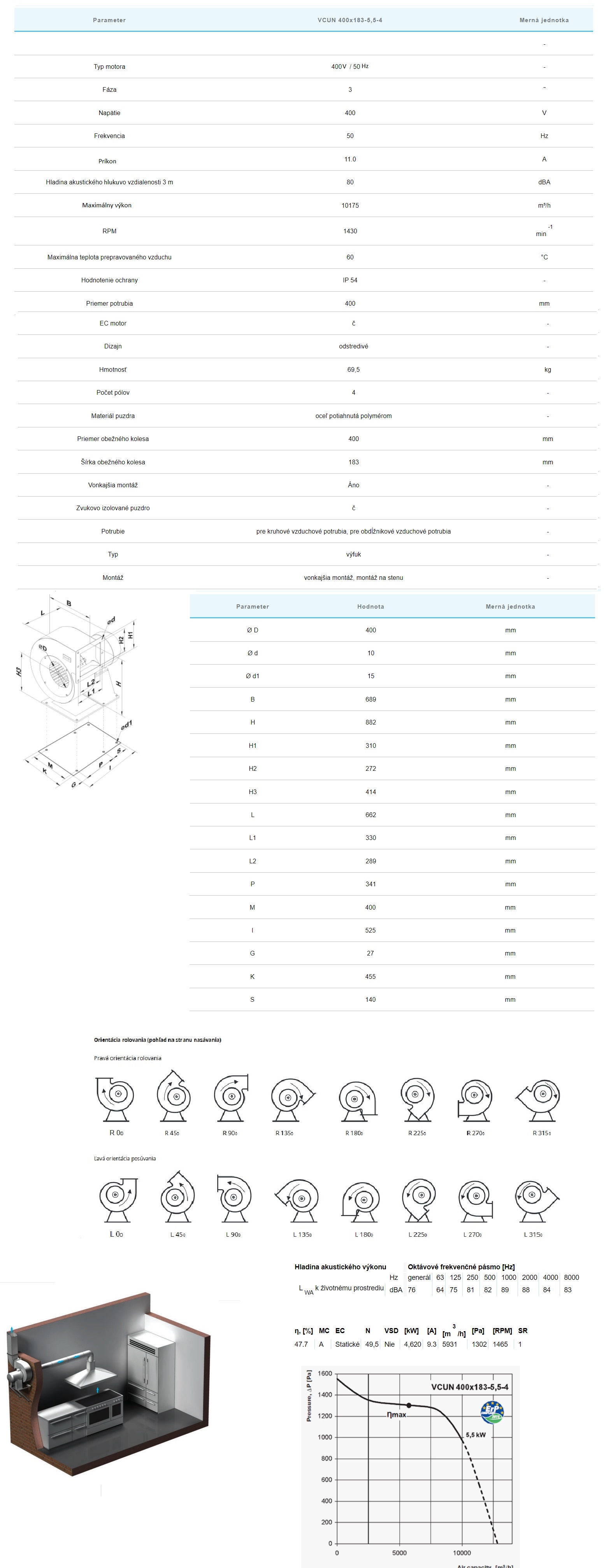 | Priemyselné ventilátory pre potrubie ⌀ | ⌀400mm -Filter zaradenia medzi výkon od 2677-do10175m3/h |