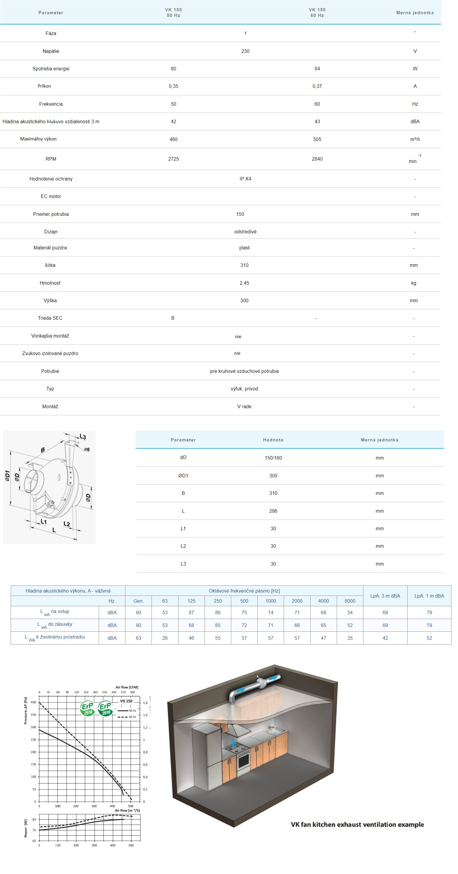 Vzhľadom na odolnosť plastového krytu je tento ventilátor ideálnym riešením pre inštaláciu vo vzduchotechnických systémoch vetrania vo vlhkých priestoroch, ako sú kúpeľne, kuchyne a podobne. Odstredivé obežné koleso s dozadu zahnutými lopatkami je poháňané jednofázovým motorom s vonkajším rotorom.