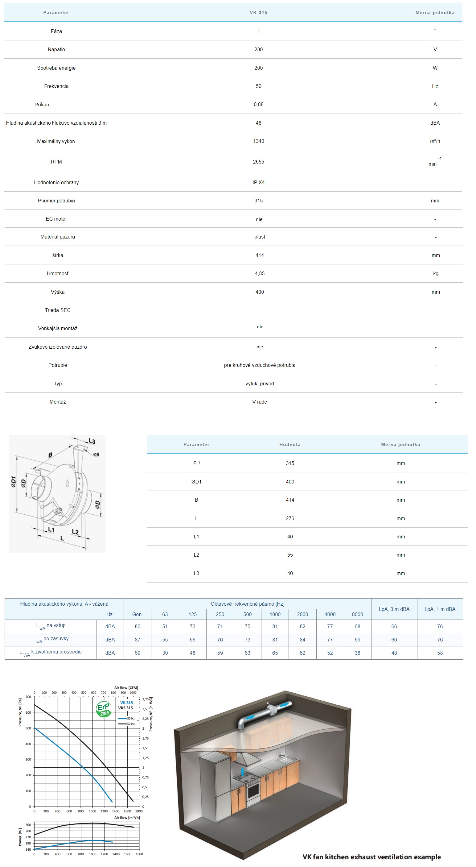 Radiálny ventilátor VENTS VK Ø315mm s výkonom 1340m3/h a napätím 230V je určený pre okrúhle vzduchovody v kancelárskych a obchodných priestoroch. Modely sú vybavené tichými motormi s nízkou hladinou hluku. Vzhľadom na odolnosť plastového krytu sú tieto ventilátory ideálnym riešením pre inštaláciu vo vzduchotechnických systémoch vetrania vo vlhkých priestoroch, ako sú kúpeľne, kuchyne a podobne.
