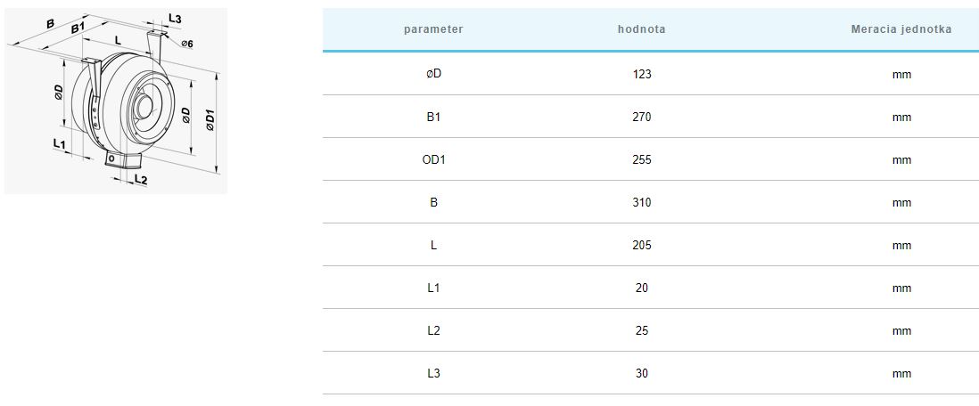 Kód: 326 VENTS- Priemyselné ventilátory pre potrubie ⌀ : ⌀100mm-Filter zaradenia medzi výkon od 114-do 425m3/h