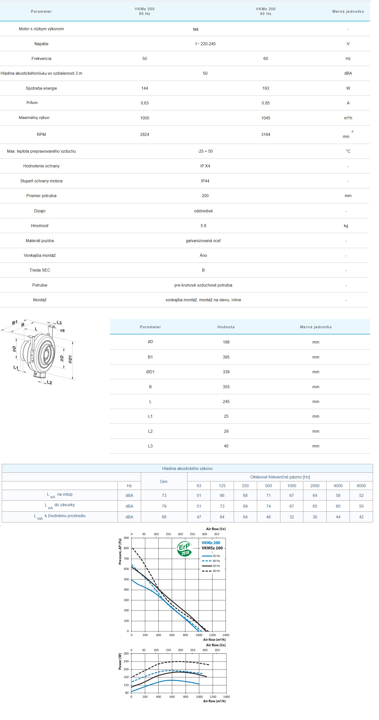 CAIROX VKAP 3.0 BCS 200L – potrubný ventilátor s priemerom 200mm, výkon 1007m³/h, napätie 230V