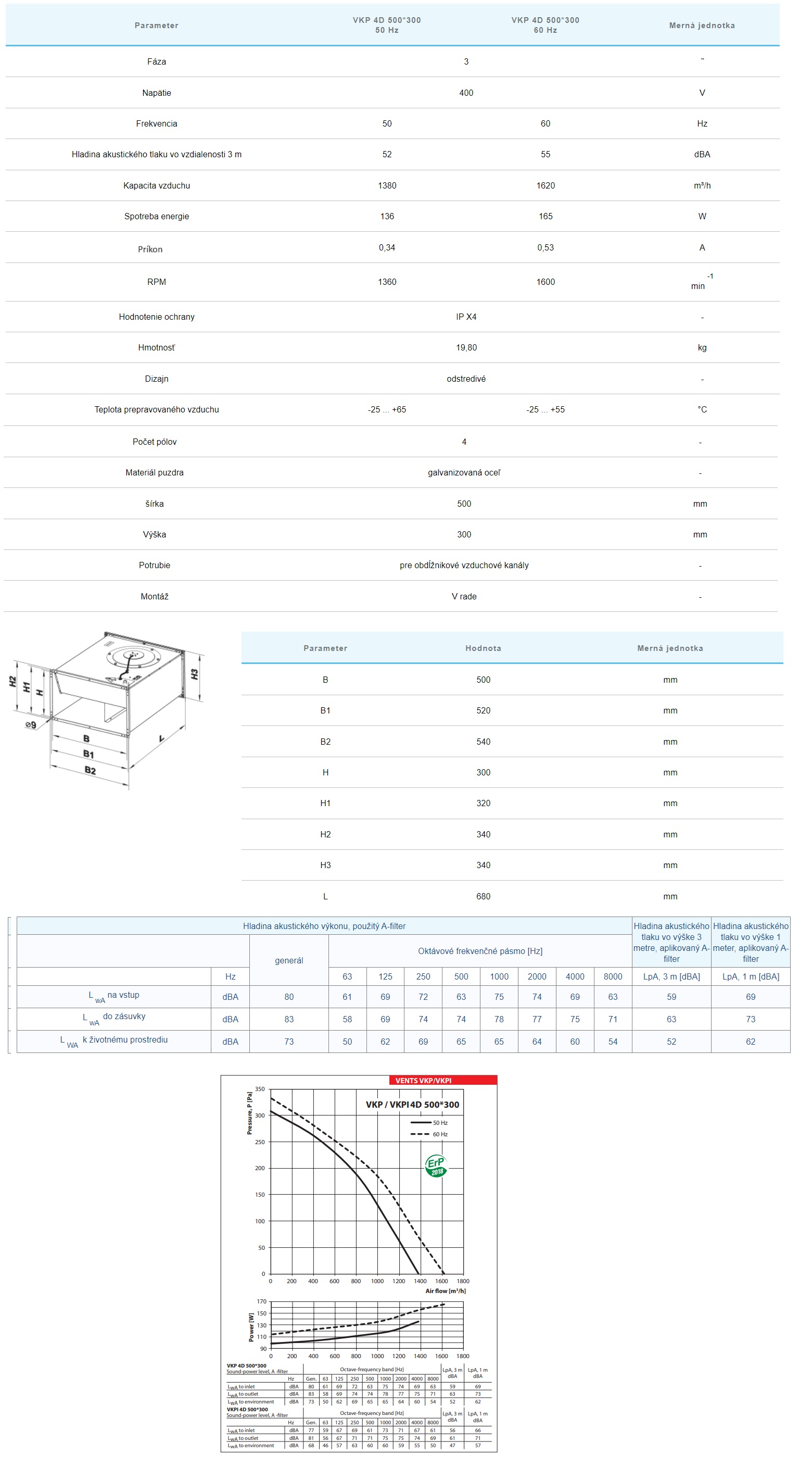 Trojfázový radiálny ventilátor VENTS VKP 4D s výkonom 1380m3/h je navrhnutý pre systémy na prívod a odvod vzduchu v obchodných, kancelárskych a iných verejných alebo priemyselných priestoroch s obmedzeným montážnym priestorom. Ventilátor je určený na spojenie s pravouhlým potrubím 500×300.
