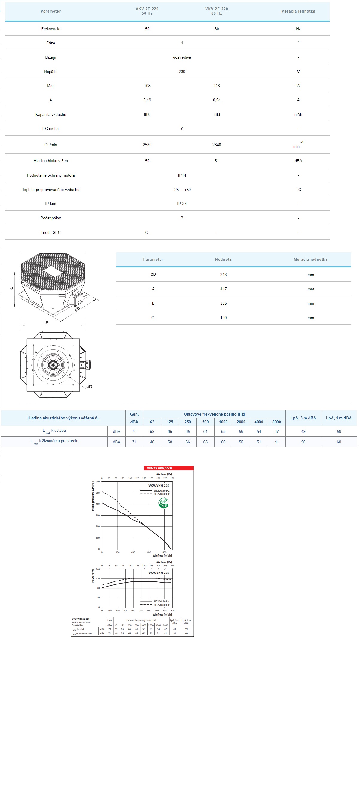 VENTS VKV 2E 220 Odstredivý strešný ventilátor 880 m³/h