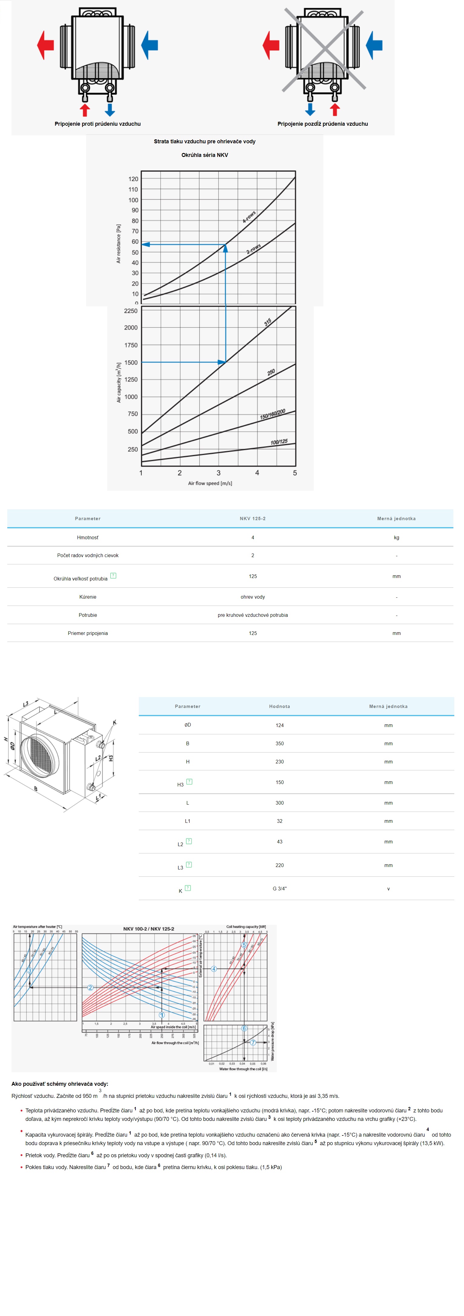Ohrievače VENTS NKW 125-2 sú určené na ohrev privádzaného vzduchu v kruhových vetracích systémoch. Môžu byť tiež použité v prívodných alebo prívodných a odsávacích ventilačných jednotkách.