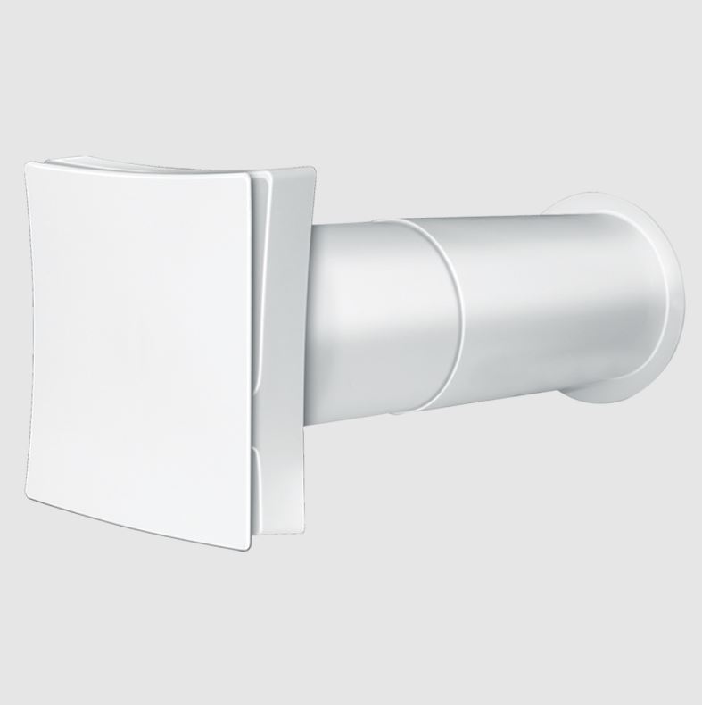 Nástenný prieduch pozostáva z 2 vetracích mriežok (vnútornej a vonkajšej) a teleskopického potrubia.