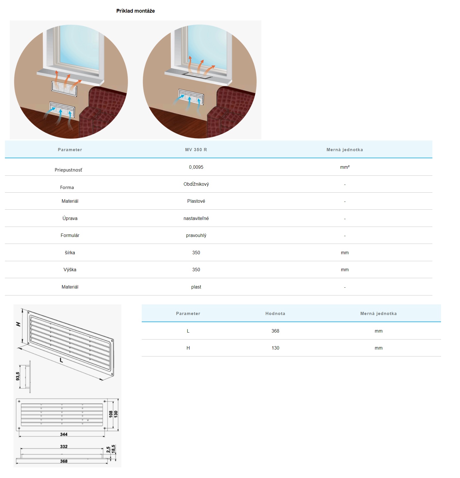 Vhodné na montáž do parapetov pre správny rozvod teplého vzduchu od radiátorov.