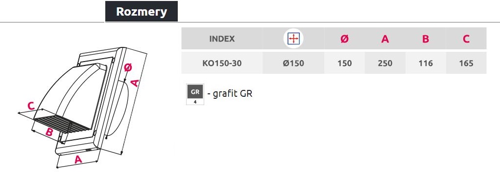 Vetracia mriežka GRAFIT KO-150-30 bez sieťky 150mm s prírubou