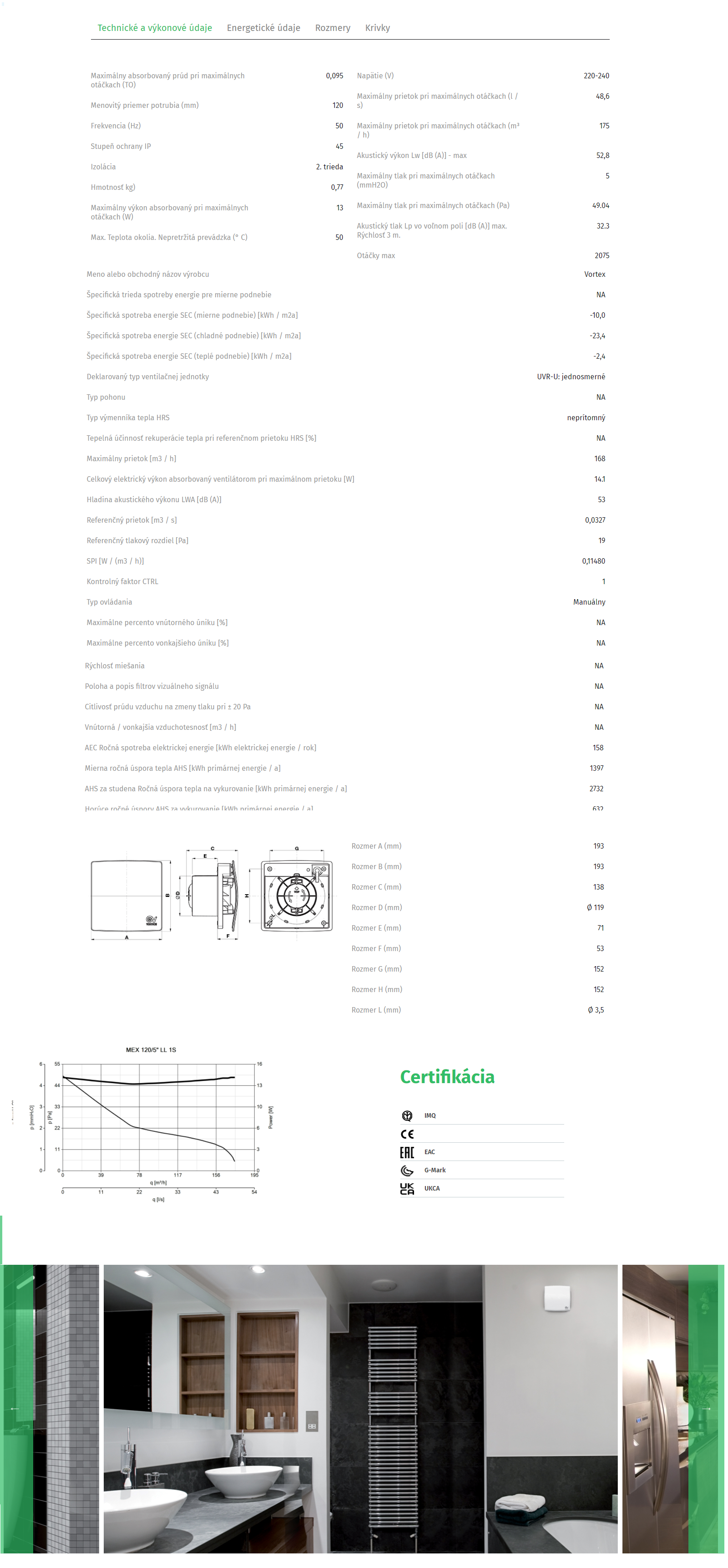 - Ventilátory do kúpeľne pre ⌀ potrubia : ⌀120mm-Filter zaradenia medzi výkon od 150-do175m3/h