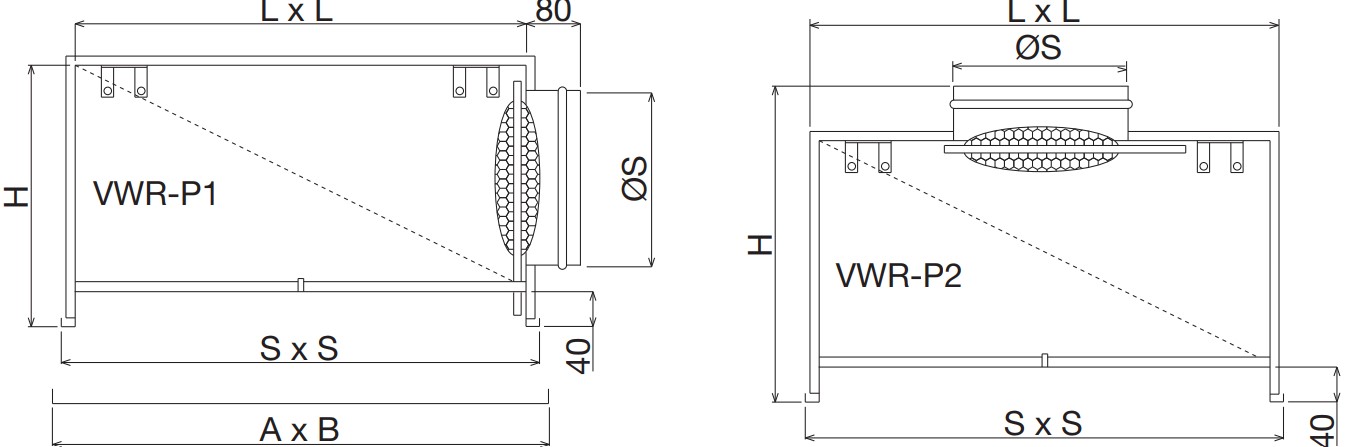 Pozinkovaná oceľová pripojovacia skriňa pre anemostaty VWR-3 (PS-)VWR-3(F)(V)X. Zariadenie je vybavené kompenzátorom prietoku, klapkou na reguláciu objemu vzduchu a závesným mostíkom (okrem individuálnych veľkostí a odchýlok od továrenského rozmeru čapov pre daný štandardný rozmer). Toto príslušenstvo je voliteľné.