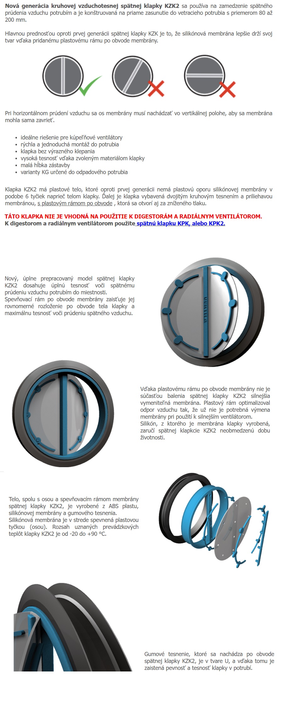 Vzduchotesná a pachotesná spätná klapka pre vzduchotechniku.